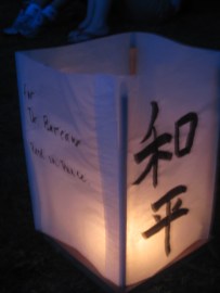 Last Thursday night, I went to the memorial lantern festival held in one of the big, gorgeous old cemeteries around here. I’ve been a number of times — it’s a big picnic with music, where folks can launch memorial lanterns in the Japanese style in honor of departed loved ones. Since I was getting one for my mom, I decided to launch one for Dr. B. as well. After his time in Asia I suspect he’d appreciate the tradition. At the very least, I know you would!