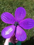 Smiling people. A sea of purple. A silver medal for raising funds. A wind-powered flower garden honoring those now suffering as well as those at peace. I wrote, “Love You Ole Dad,” on one with a big grin on my face.